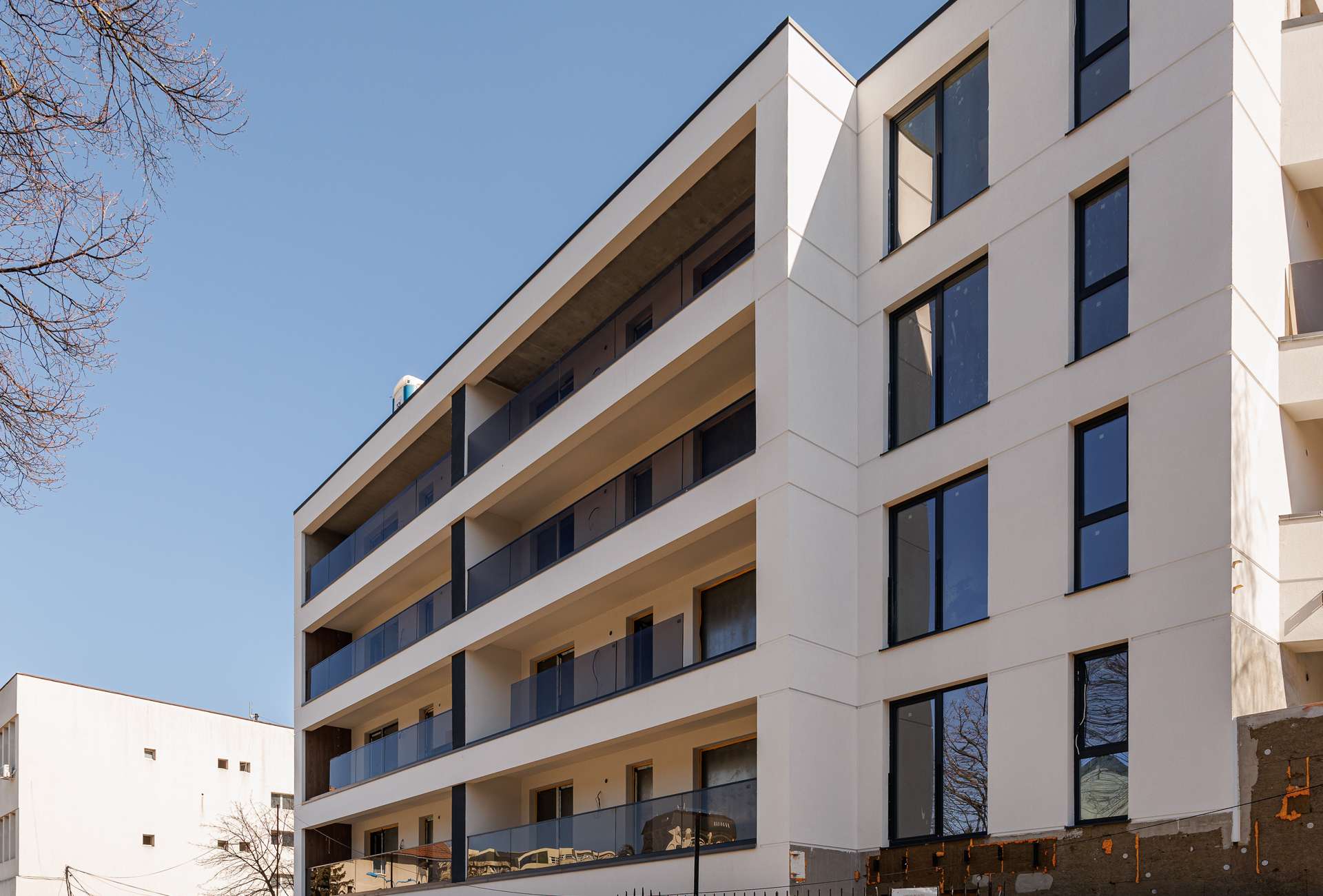 Placările cu Laminam pe balcoane sunt realizate la etajele 1–4.