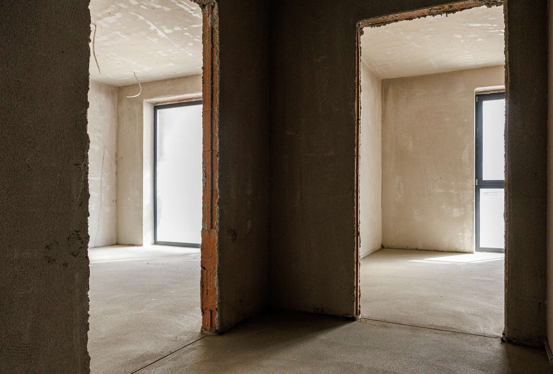 La etajul 4 sunt realizate instalațiile electrice la roșu, iar lucrările de tencuială au început.