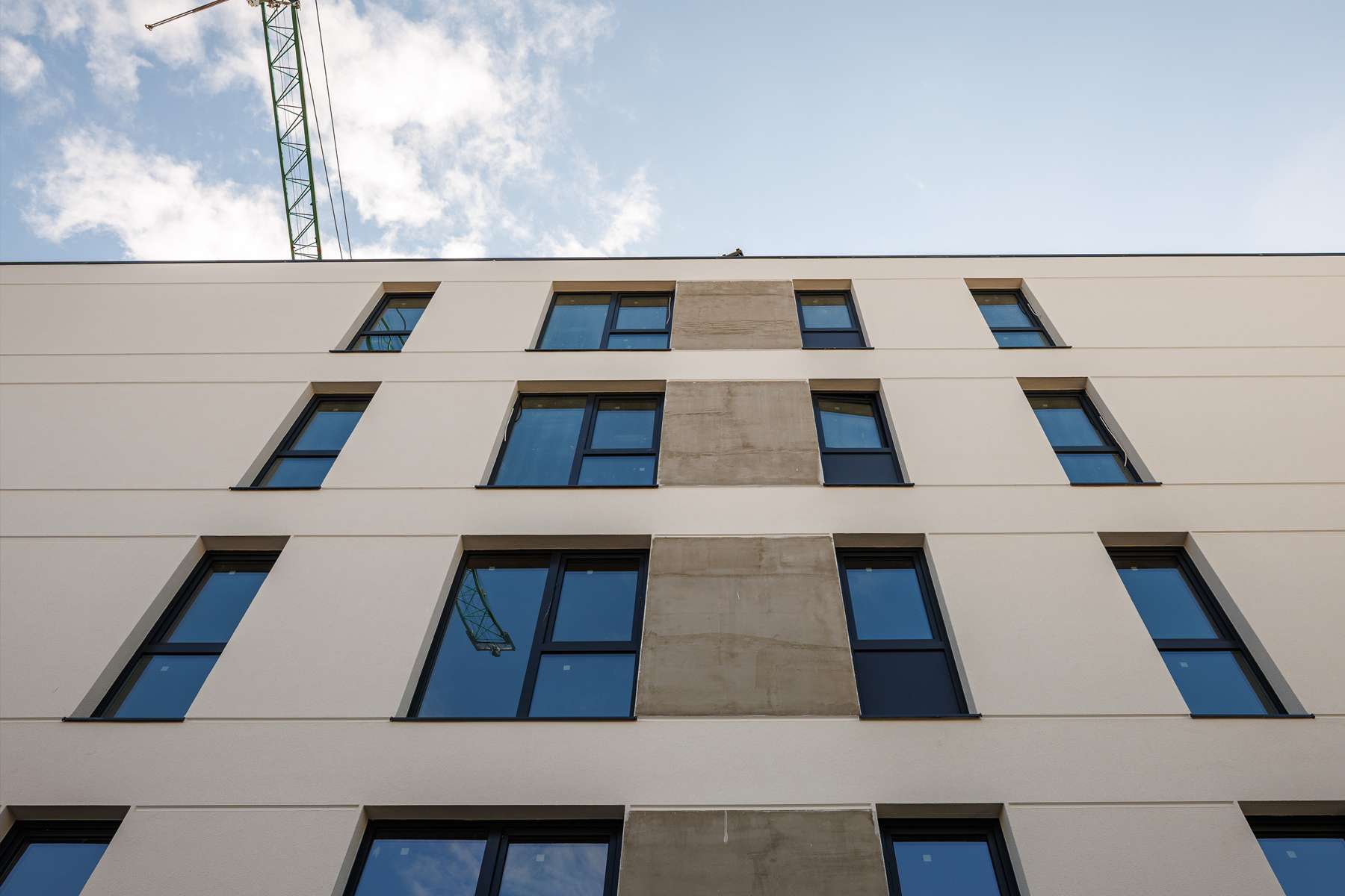 Fațada a fost pregătită pentru aplicarea tencuielii decorative pe laturile de vest și nord.