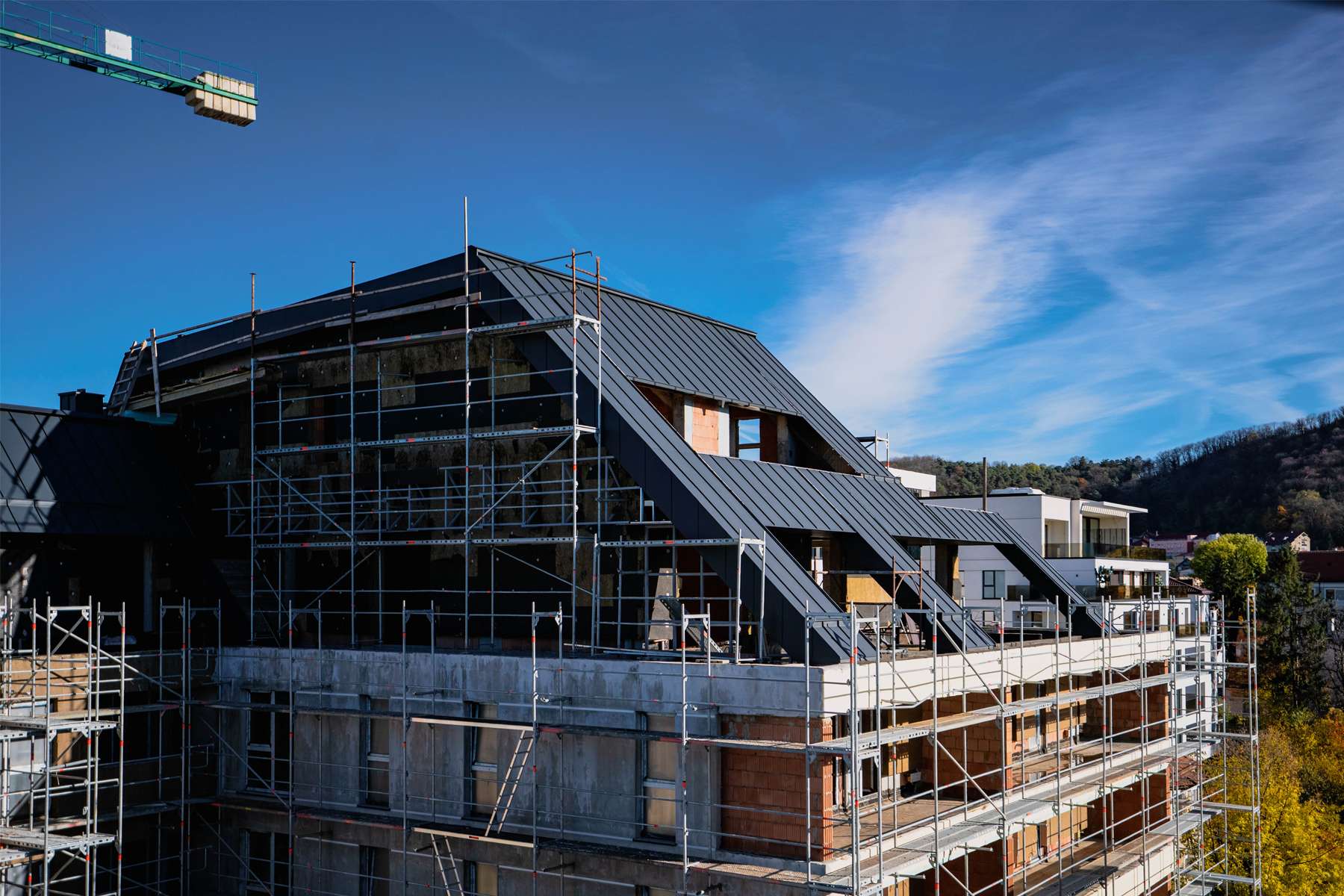 Etajul 4 se află în etapa de finalizare a șapei, iar etajul 3 este finalizat.