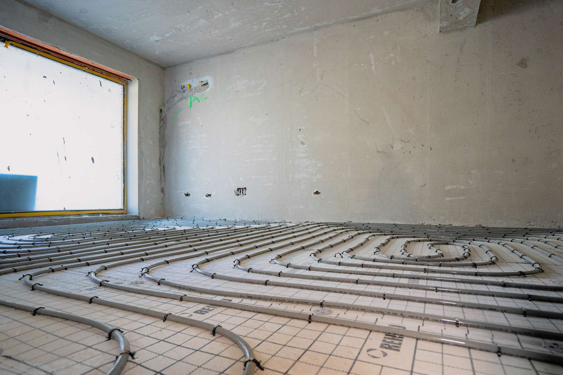 La etajele 3 și 4 a fost finalizat sistemul de încălzire în pardoseală.