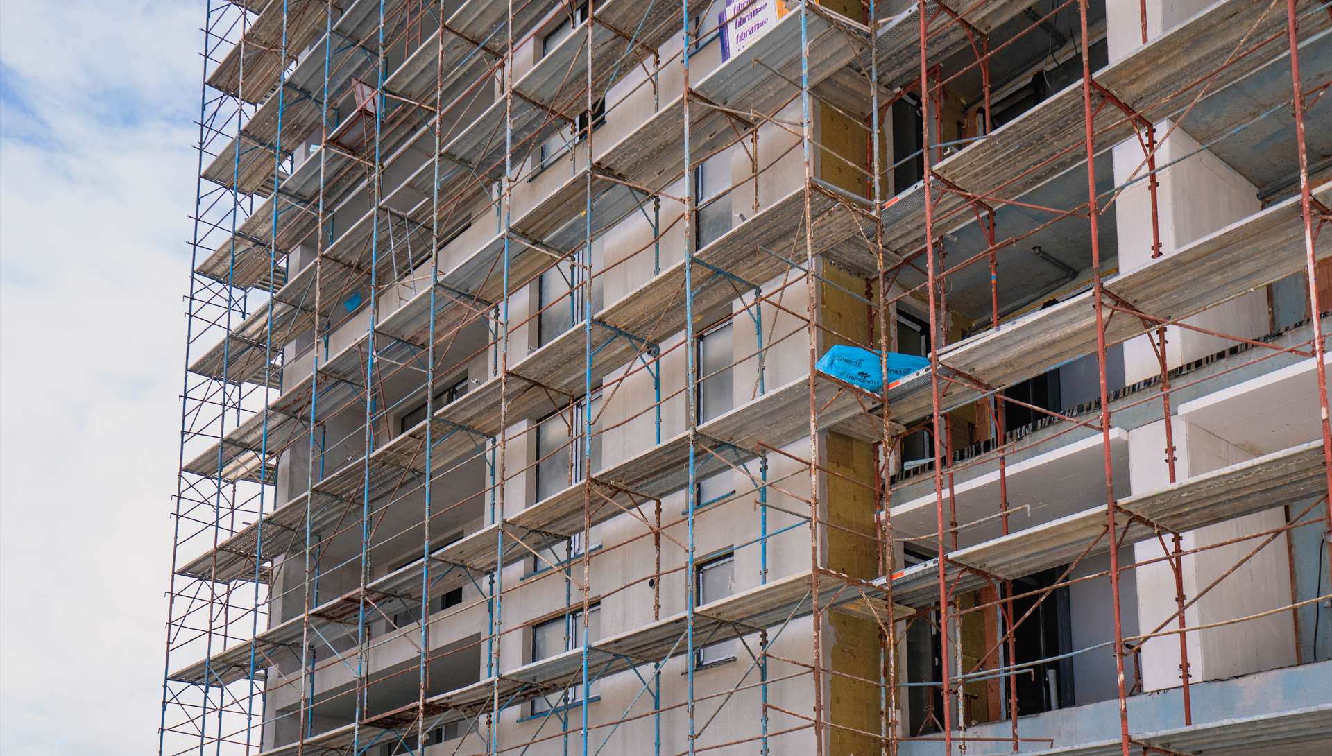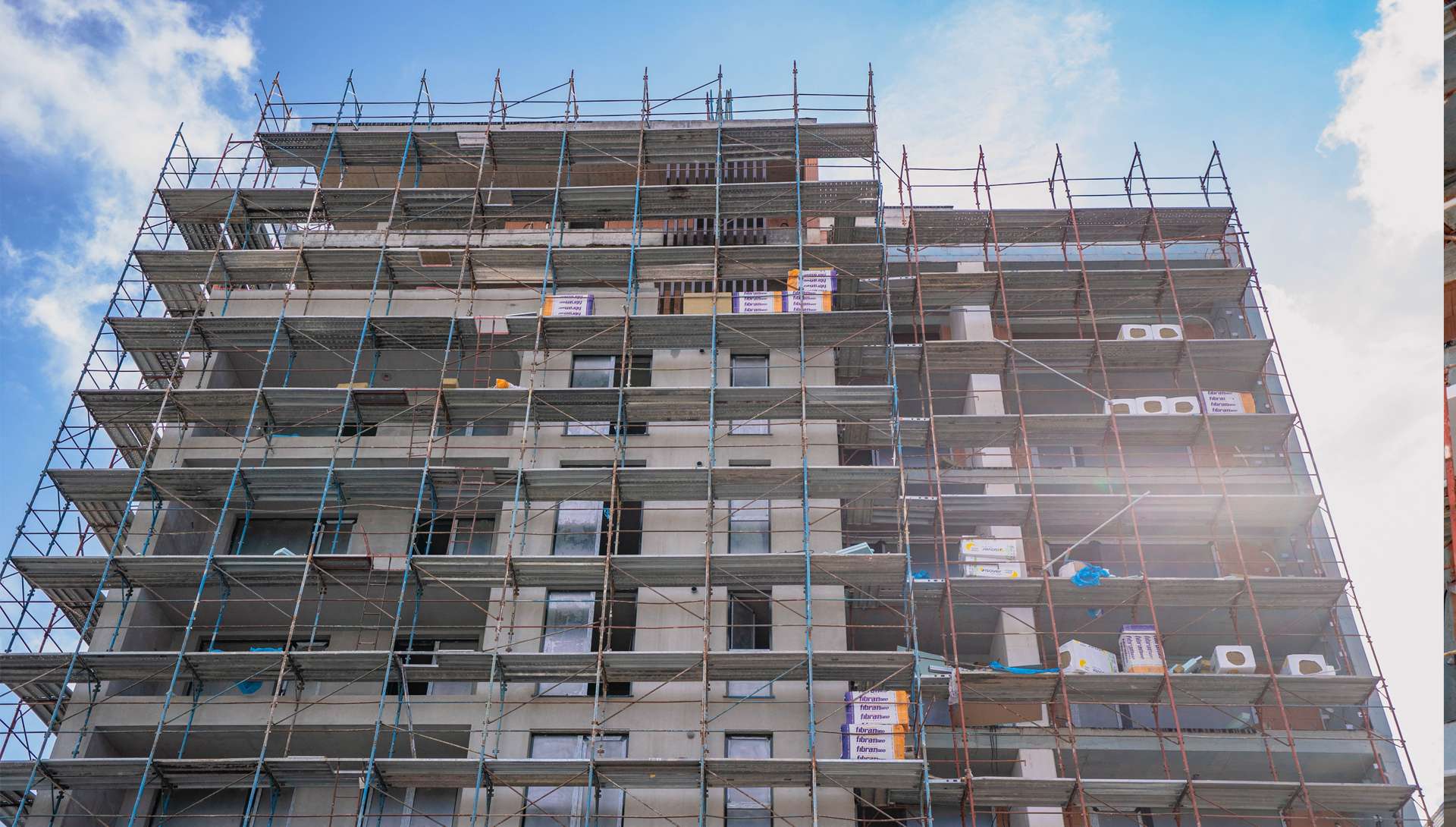 Fațadă nord, est și vest: masă de șpaclu finalizată.